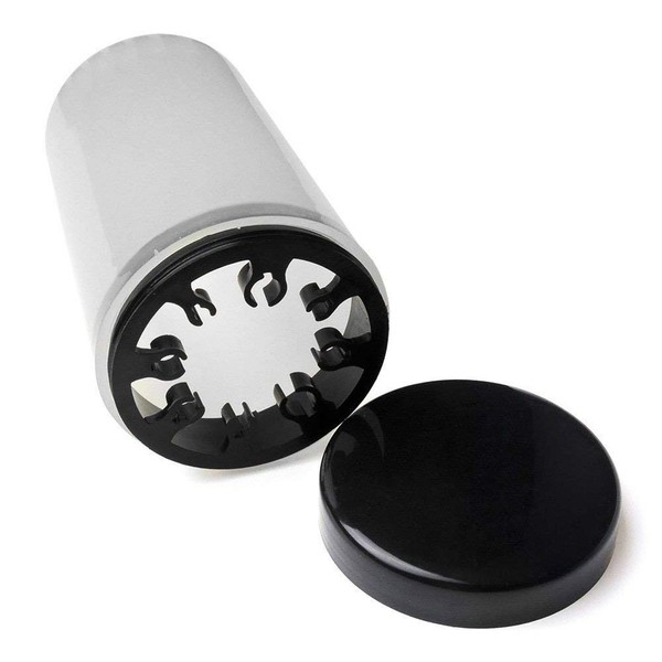 - Diseño: copa cilíndrica con apertura en la parte superior. Ranura circular interior plana diseñada con 8 soportes para cepillos en una gama de tamaños pequeños a grandes. Amplia apertura en el centro para un fácil acceso y uso de inmersión. Viene con tapa de rosca para cierre, protección y prevención de la evaporación del líquido