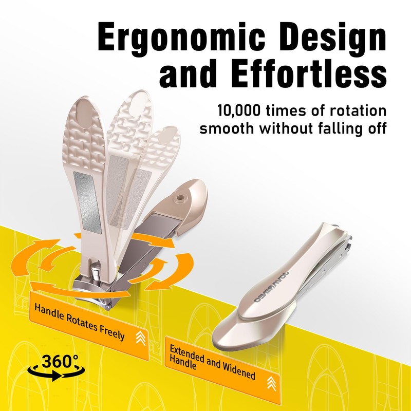 - Ergonomic Thickened Handle: Features an extended, thickened, non-slip handle for a secure grip and better leverage. Ideal for men, women, seniors, and kids who need comfortable, precise control while using nail clippers, cutters, or nail trimmers.
