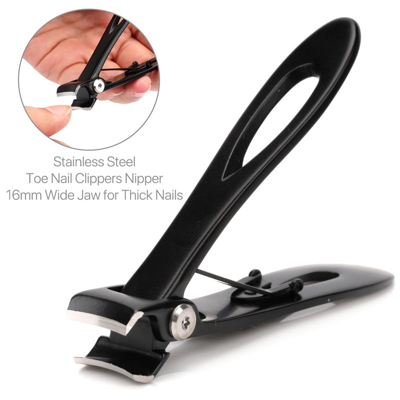 Nail Clippers 16mm Wide Large Jaw Opening For Thick Nail Stainless Steel Black Fingernail and Toenail Nipper Cutter Podiatry Trimmer Pedicure Manicure Kit