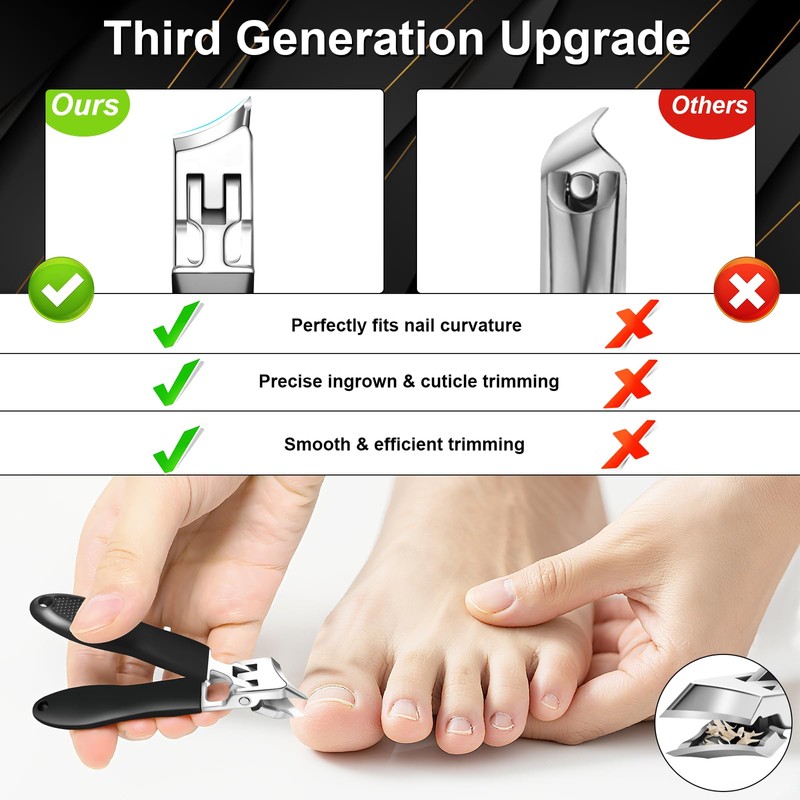 - [Surgical-Grade Sharpness] Smooth Cutting Experience. Made from premium stainless steel, our heavy-duty nail clipper undergoes multiple polishing processes for ultra-sharp performance. Effortlessly trims thick toenails and delicate fingernails without snags or splits, promoting healthier nails.