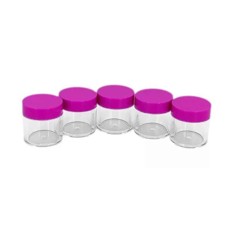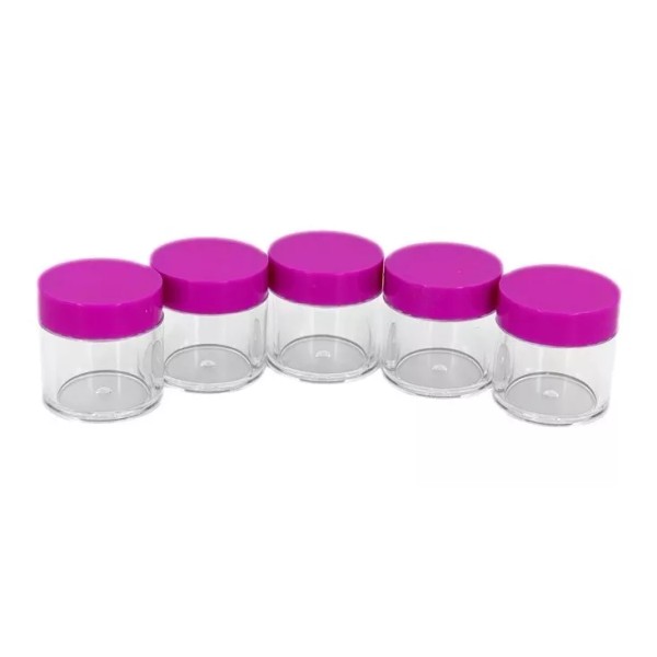 Los frascos son transparentes y pueden contener una amplia variedad de artículos, entre ellos: polvo, cristales, efectos, crema, etc.