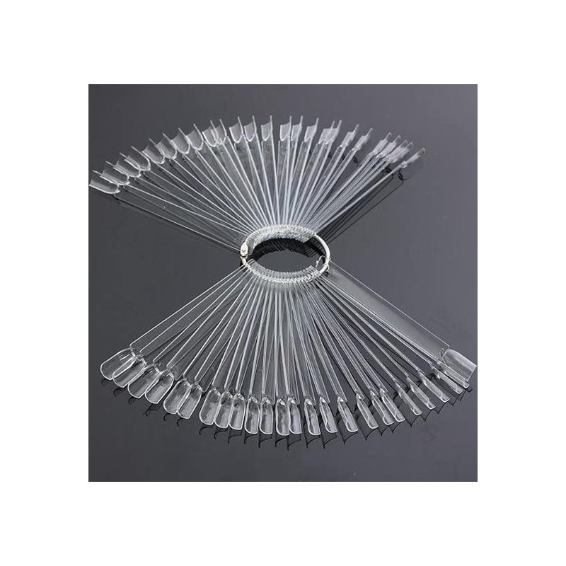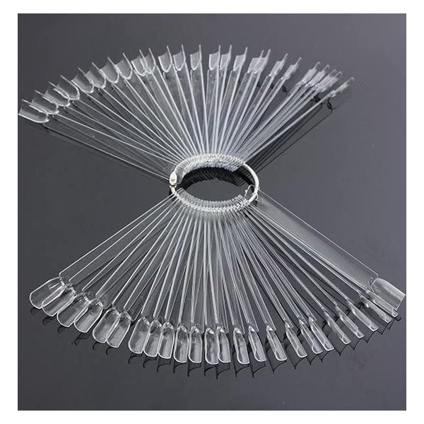 Nail display compartments, 2 x 50 nail tips, set of 2 (100 nail tips, 2 rings), attachment using an iron ring, beautiful and stable quality for a longer product life, can be used for displaying your nail art creations and the colours of nail polish from your range, suitable for beginners and professionals, transparent/transparent, easy to use.
