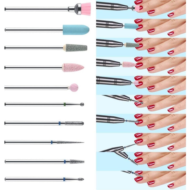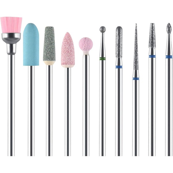 Nail Drill Bits Set, 10 pcs Electric Nail Drill Kit 3/32" Professional Cuticle Polishing Bits for Acrylic Gel Nails, Electric Nail Files Manicure Pedicure Drill Tool for Home & Salon