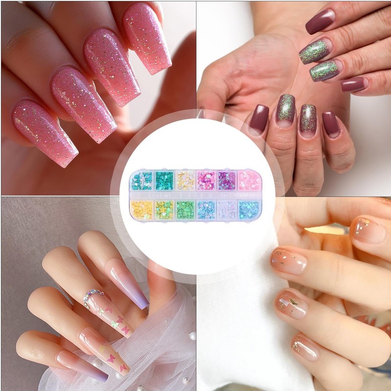 - Efficient Glitter Storage: Organize nail glitter by color in a 12-section case, with flipping cover access for dustproof and waterproof protection, ensuring precise application control effortlessly
