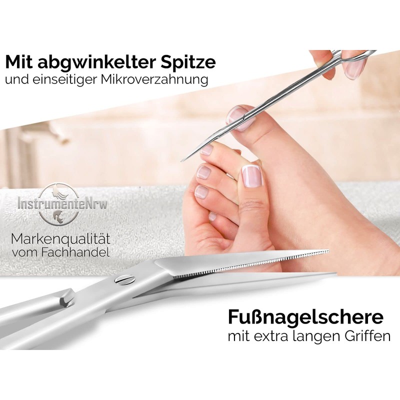 Long nail scissors for seniors to precisely trim fingernails and toenails without splintering. An excellent foot care tool for younger and older generations. Brand quality from InstrumenteNRW. InstrumenteNRW is a registered trademark. We stand for quality, service and durability. InstrumenteNRW your family business from NRW Germany. Where others stop, we are here for you!
