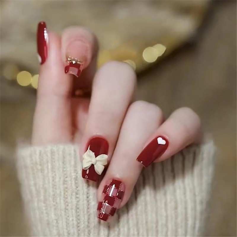 Nail Tip Short, Autumn and Winter, 3D Nail Press, Handmade Red Type, Red Nail Tip, Reusable Coming of Age Ceremony, New Year, Bride Nail, Glitter Nail Tip, Cute, Red, Nail Tip, Popular, Glossy,