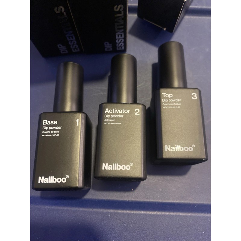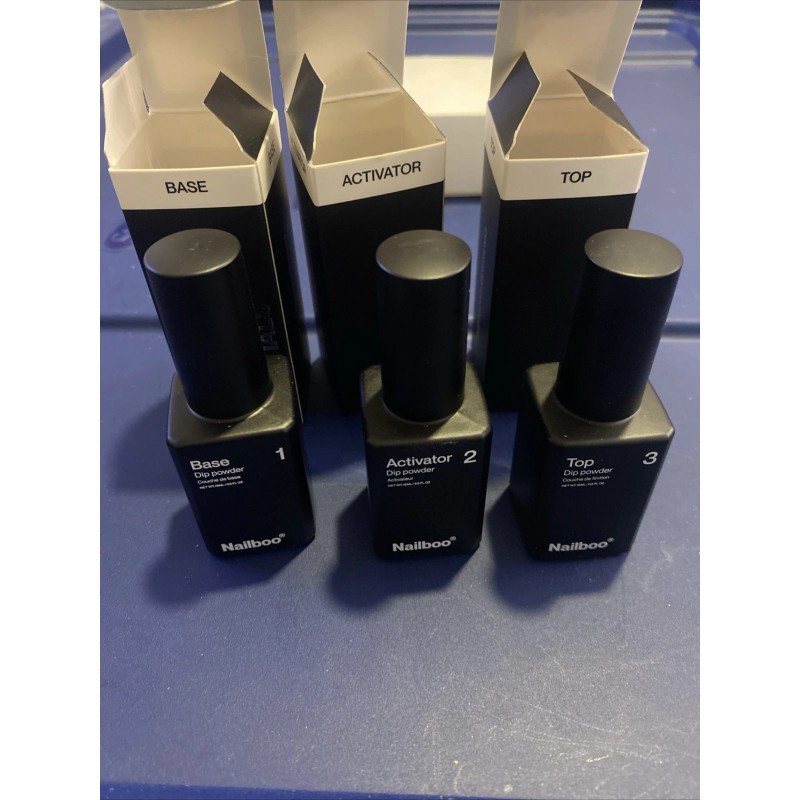 Nailboo Dip Essentials 3 pc set Top Coat, Activator, Base Coat New Kit. Comes as pictured. Any questions just contact us.