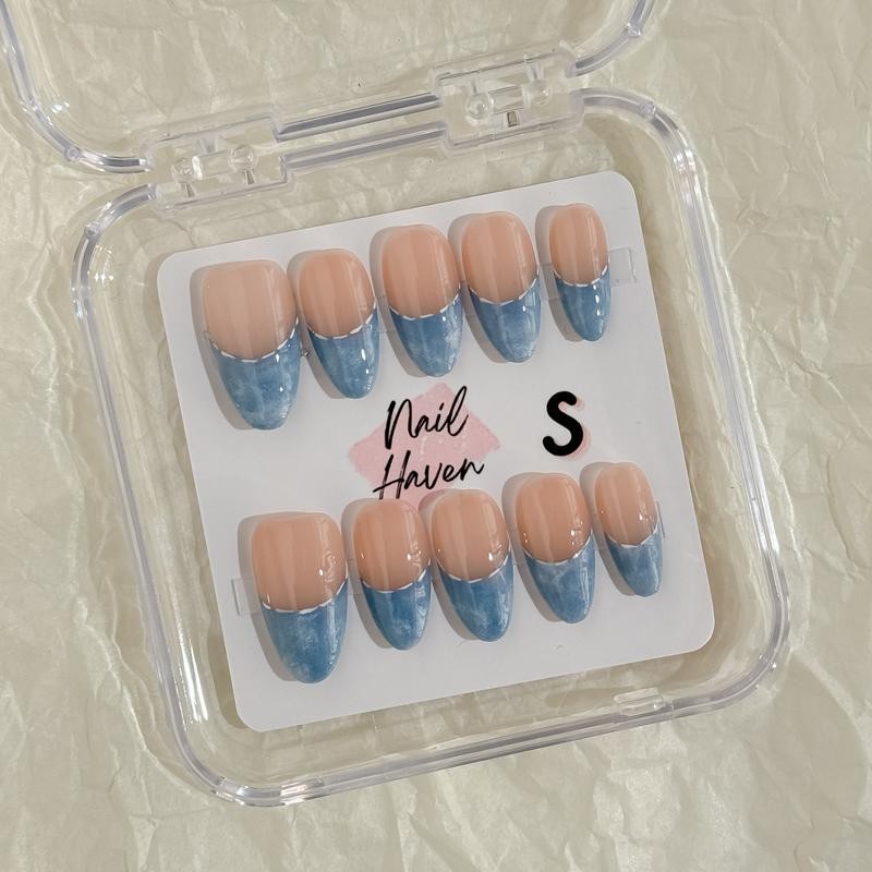 - NailHaven| French Tip Collection| Press-On Nails - 10 Pcs Handmade Acrylic Nails with Cute Designs, Short Nails, and Nail Art, High Quality, Reusable
