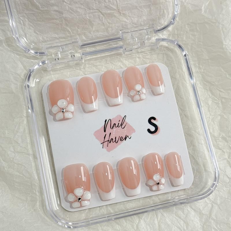 - NailHaven| French Tip Collection| Press-On Nails - 10 Pcs Handmade Acrylic Nails with Cute Designs, Short Nails, and Nail Art, High Quality, Reusable