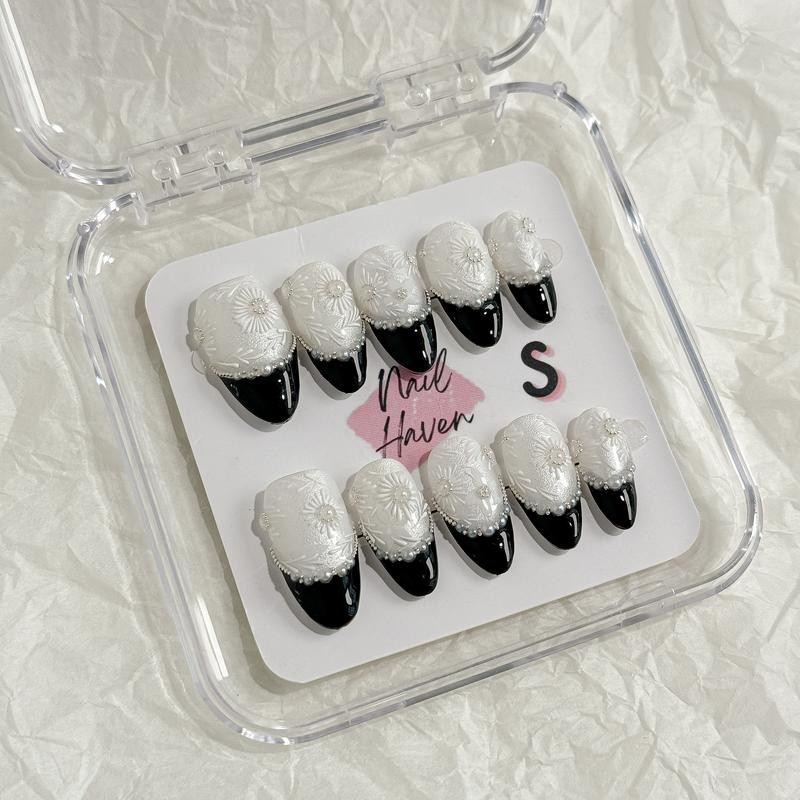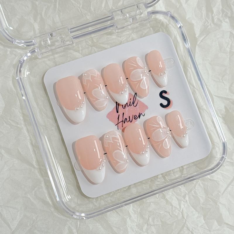 - NailHaven| French Tip Collection| Press-On Nails - 10 Pcs Handmade Acrylic Nails with Cute Designs, Short Nails, and Nail Art, High Quality, Reusable