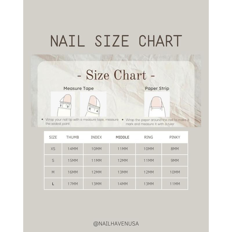 PLEASE MEASURE YOUR NAILS BEFORE ORDERING! We try to provide high quality nails at the lowest possible price, therefore it is really hard to swap out nails when people do not measure their nail beds. So please match your nails to the sizing chart if you are new to press on nails. Thanks!