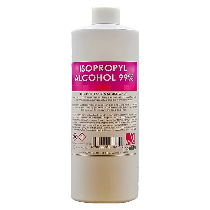 - INGREDIENTS – 99% pure isopropyl alcohol. Made by Nailite in the USA