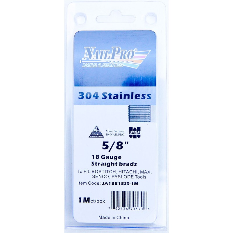 NailPRO 18 Ga x 5/8" Stainless Steel Brad Nails, 1000 Count (5/8")