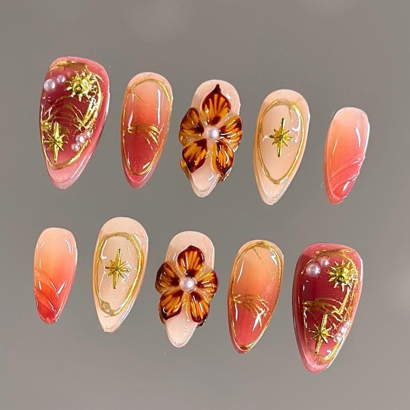 NailVesta DreamWear Collection – 100% Handcrafted 3D Press-On Nails | Reusable, Long-Lasting, Salon-Quality:_Afterglow_S