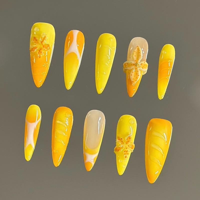 NailVesta DreamWear Collection – 100% Handcrafted 3D Press-On Nails | Reusable, Long-Lasting, Salon-Quality:_Floral Lemonade_M
