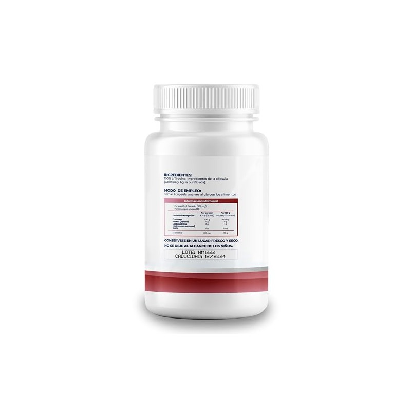 NAIMA L-Tirosina, 100 Cpsulas Suplemento Alimenticio 100 Puro y Natural Energa, Concentracin, Bienestar General Sin Aditivos