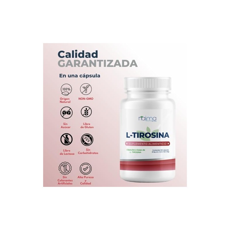 🌟 ⭐ NAIMA L-Tirosina, 100 Cápsulas | Suplemento Alimenticio 100% Puro y Natural| Energía, Concentración, Bienestar General | Sin Aditivos ⭐ 🌟