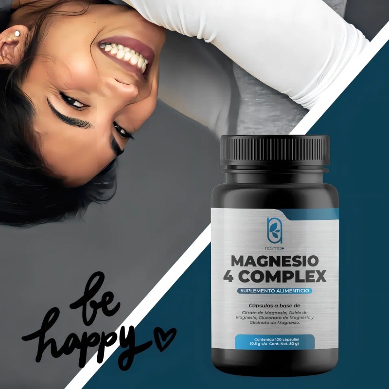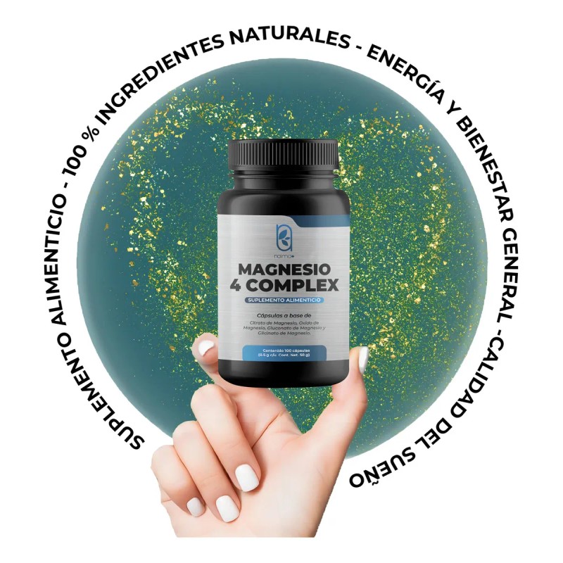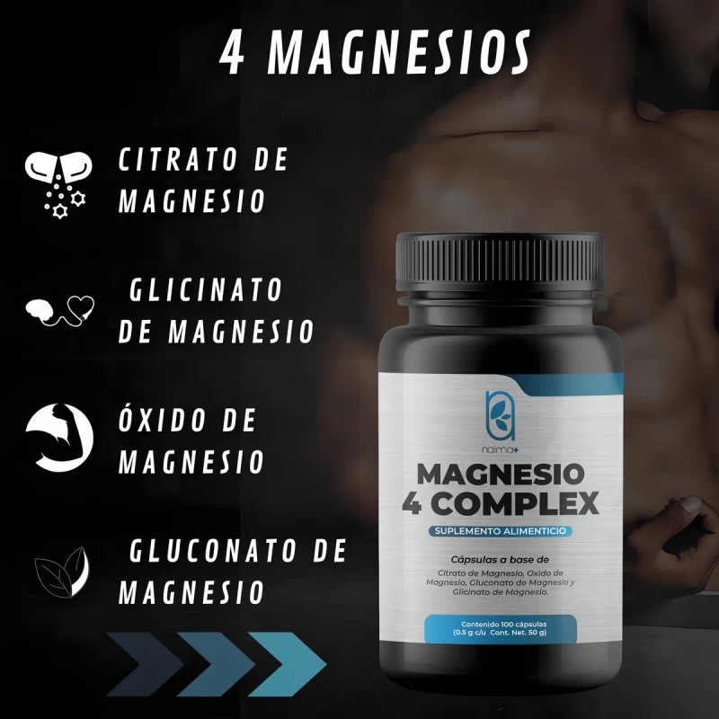 NAIMA Magnesio 4 Complex, 100 Cpsulas Citrato, Glicinato, xido y Gluconato de Magnesio Suplemento Alimenticio 100 Puro Ingredientes Naturales, Sin