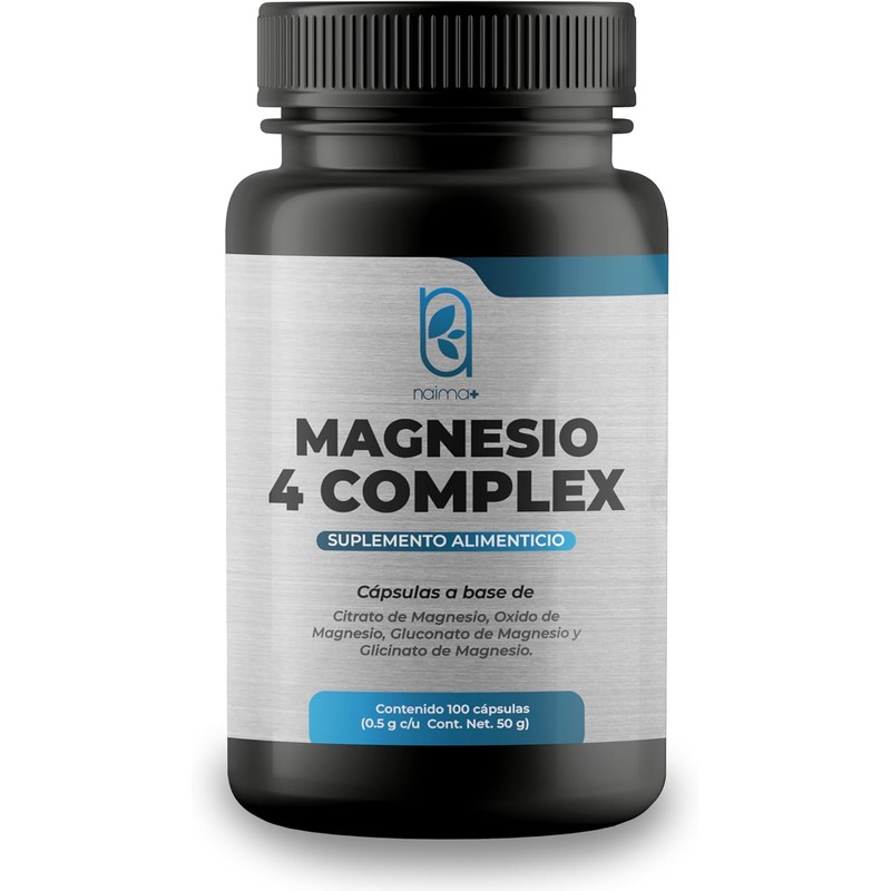 NAIMA Magnesio 4 Complex, 100 Cápsulas | Citrato, Glicinato, Óxido y Gluconato de Magnesio | Suplemento Alimenticio 100% Puro| Ingredientes Naturales, Sin Aditivos | Energía, Bienestar Físico y Mental
