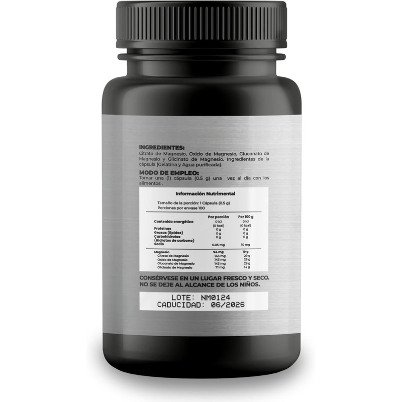 • Fórmula Completa: Cada cápsula contiene 500 mg de Magnesio 4 Complex, que combina Citrato, Glicinato, Óxido y Gluconato de Magnesio para una absorción y efectividad óptimas.