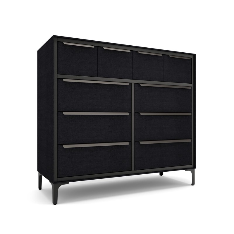 Naima Premium Fabric Dresser - Strong Metal Frame, 10 Spacious Sag-Proof Drawers with Sleek Metal Handles - Premium & Durable Storage Solution for Your Home (Black)