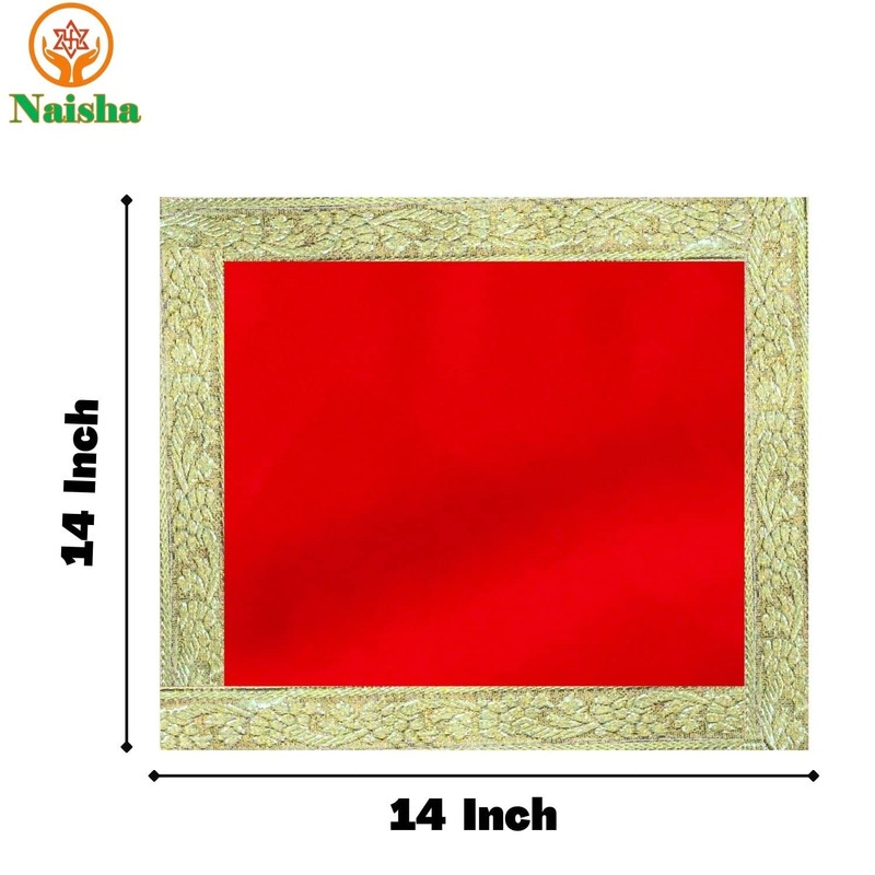 NAISHA Red Pooja Aasan Mat Set of 2, 14" X 14" Velvet Puja/Altar Cloth Mandir, Multipurpose Pooja Decorations Keeping Accessories of Temple, Chowki, Slab Article.