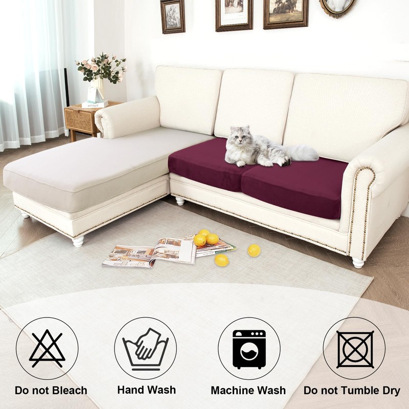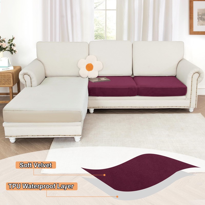 Our L-shaped couch cushion cover is made of thick velvet material which makes it super stretch and more flexible.These couch cushion covers feature a TPU waterproof layer on the back. Protect the sofa from getting dirty with liquids.Great on against spills,stains,and normal wear and tear.