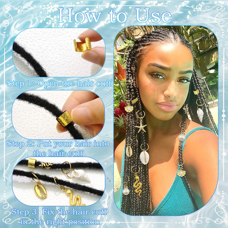 - Easy to use: It is simple to use, just select the hair you want to decorate, slide the hair rings for braids for black women onto your hair, and adjust it to the position you want. The elegant metal decoration makes your hairstyle more textured and shows your unique charm.