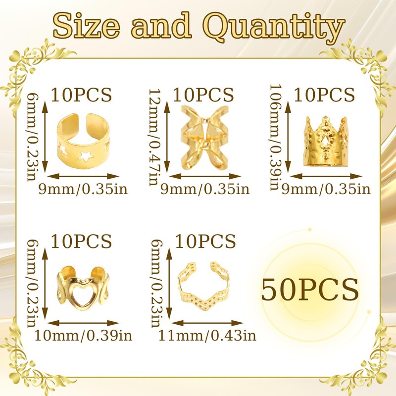 - High Quality Material:50PCS Hair Jewelry Braid Clips Hair Accessories are made of alloy with plated technique, that light weight and not easy to be broken or faded.Our braid accessories can bring you a variety of wearing experiences and make you look more eye-catching in the crowds.