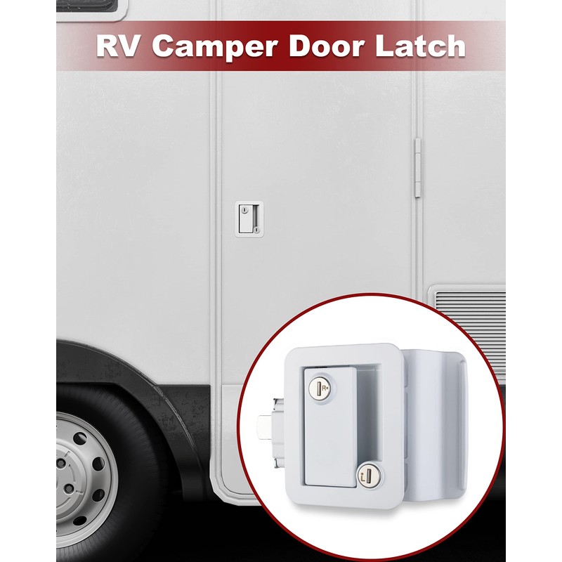 Naissian RV Camper Door Lock Latch Deadbolt Lock Entry Side Door Lock with Handle for Travel Trailer 5th Wheel Universal Security RV Compartment Side Door Latch, White, Pack of 2 Lock+ 8 Keys Alike