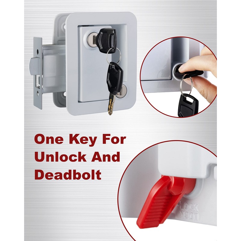 - 【Upgraded Deadbolt Lock for RV, Never Locking People Inside】We have studied many horrible accidents of deadbolt door lock failure locking people inside or outside and they cannot get out but have to spend more money to break the door or window. It is all because of the mechanism fail to secure the deadbolt and it goes loose and spin inside but not turn the cylinder. We have identified the bug and solved it, Buy with confidence.