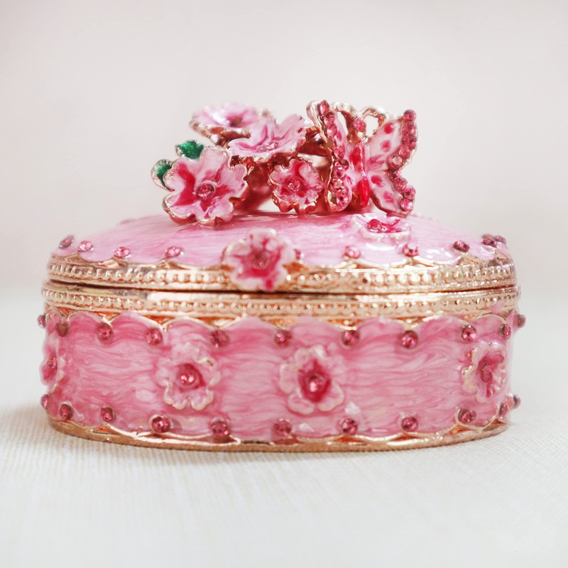 - Design - Aureate edge highlights its simple sense, the stereo flower of box body increases aesthetic to make it not drab. The three-dimensional floral craft and butterfly design at the top of the lid make it easier for you to open it while decorating.