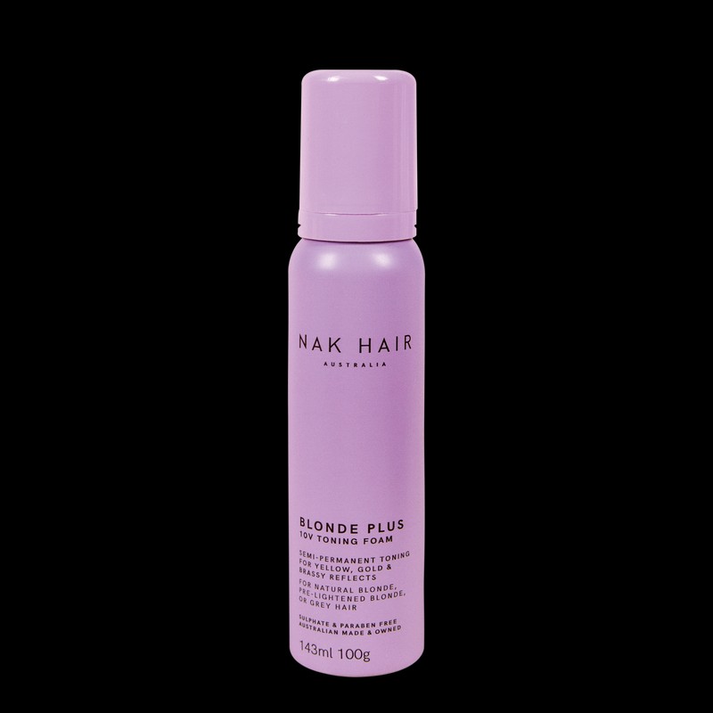 Nak Blonde Plus 10v Toning Foam 143ml is a pale violet blonde toner that delivers temporary violet colour pigments to blonde hair, neutralizing unwanted warmth and maintaining colour in-between salon visits.