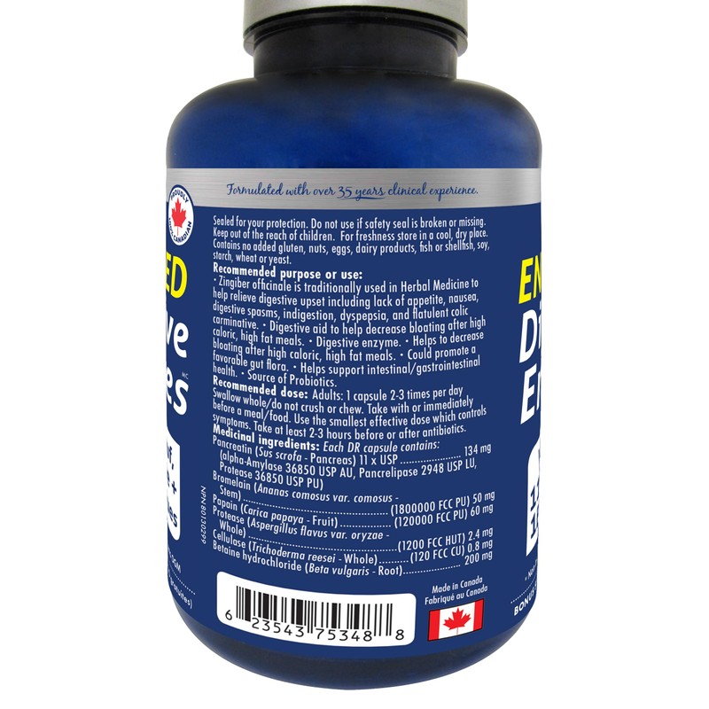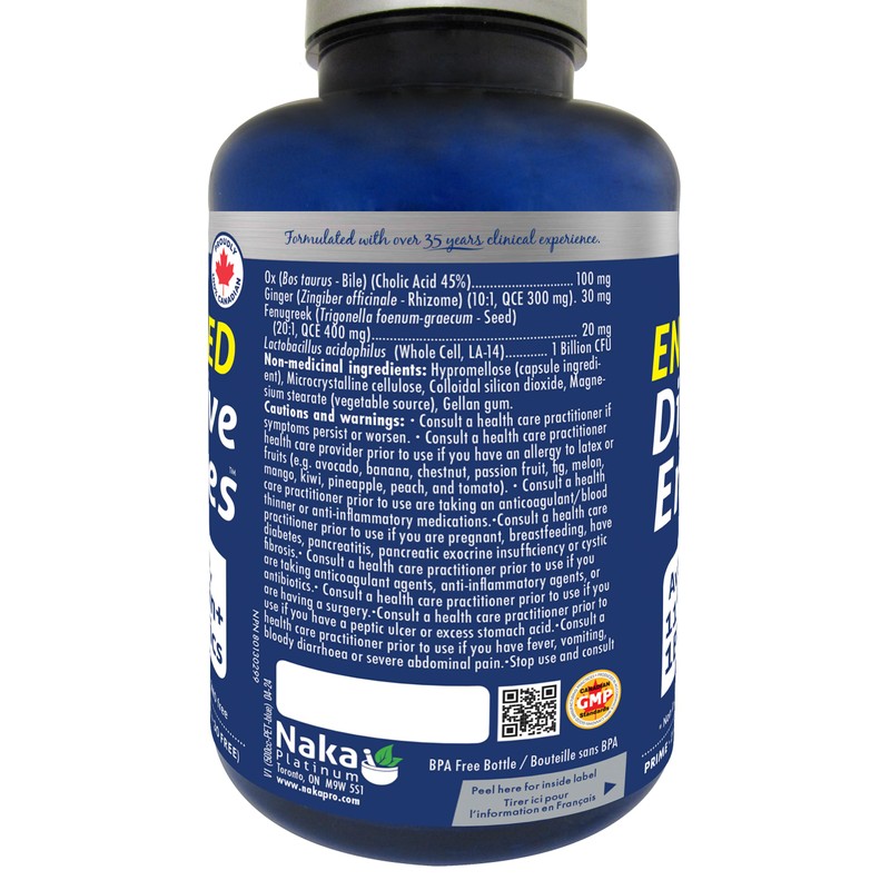 Naka Platinum Enhanced Digestive Enzymes, With Ox Bile, 11 X Pancreatin + 1B CFU Probiotics, SHELF STABLE/DAIRY FREE, Made in Canada (210 DR vcaps)