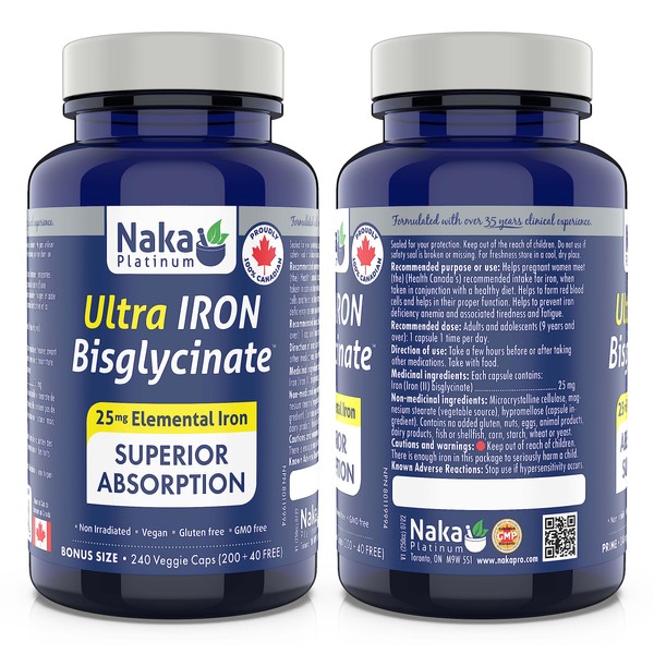 Naka Platinum HEME IRON 11 mg Elemental Iron superior absorption Bonus Size 120 Capsules (100+20 Free)