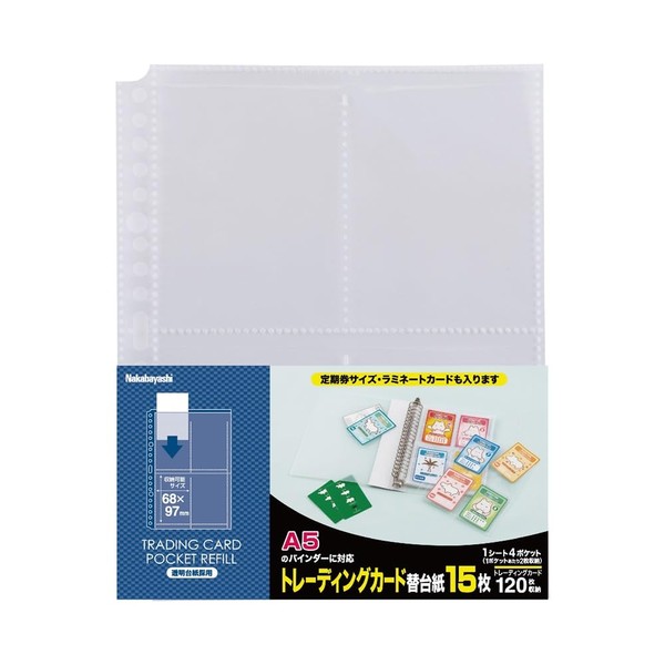Nakabayashi BCR-6C4 Trading Card Replacement Card/4 Pockets, 15 Sheets