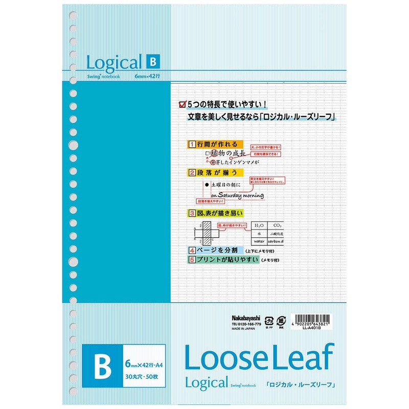 Nakabayashi LL-A401B Swing Logical Loose Leaf A4 B Ruled, 50 Sheets, White