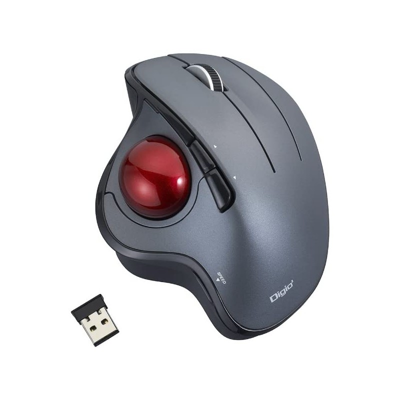 Nakabayashi MUS-TRIF180GY Digio2 Wireless 5 Button Optical Trackball Mouse with Adjustable Angle, Gray