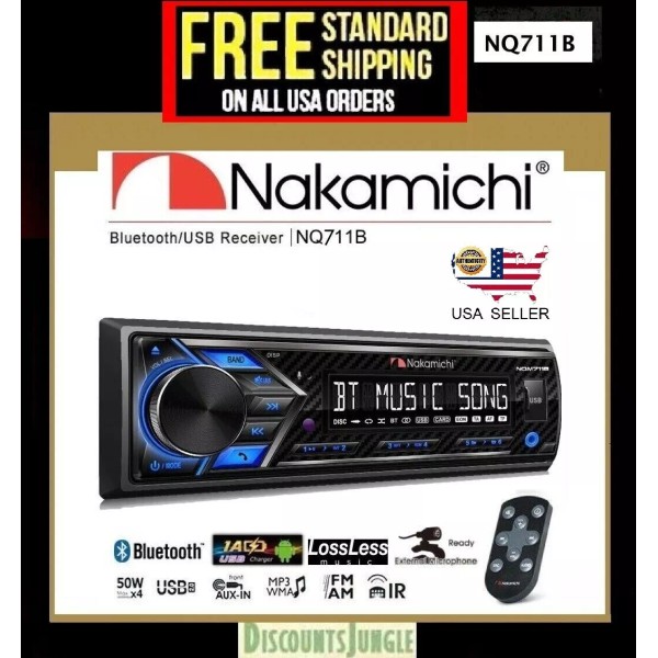 Nakamichi NQ711B 1-DIN Bluetooth USB AUX Radio Car stereo Digital Media Receiver