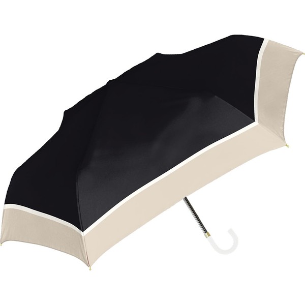 Nakatani Natural Basic Folding Umbrella, UV Tri-Color, Black, Hand Open, Rib Size: 21.7 inches (55 cm), Black Coating, Windproof