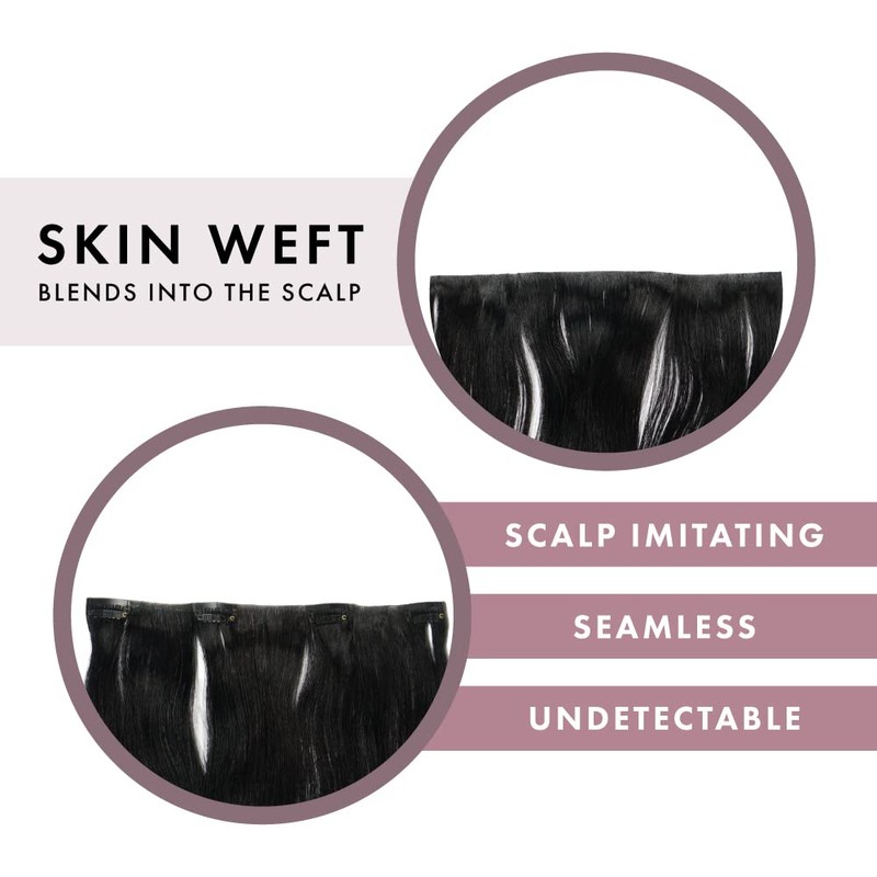Naked Clip-In Hair Extensions by everlong, Skin Weft Scalp Imitating Invisible Base, Premium Remy Human Hair for Length & Volume, 140 Grams (14 inch, #1 Jet Black)