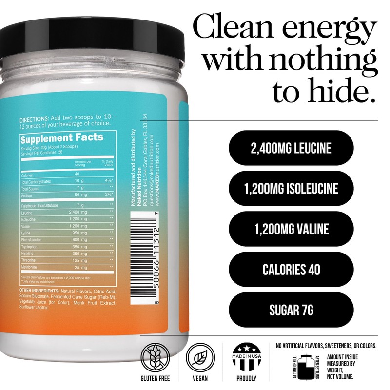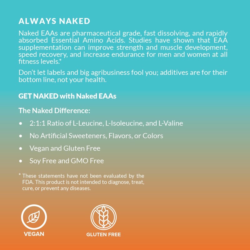 - PURE ESSENTIAL AMINO ACIDS: Naked EAAs is the highest pharmaceutical grade and fastest dissolving amino acids powder on the market. With pure ingredients, our amino acid supplement has been designed to support your performance in the gym.