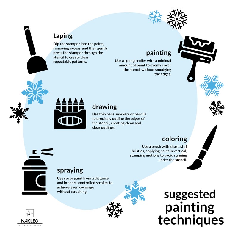 - CREATIVE APPLICATION: Self-decorated Christmas cards, delicate snowflakes painted on the windows, the unusual smell of cookies waiting to be decorated - the possibilities are endless. Just use artificial spray snow, glitter, silver or gold paint, or any other decoration and repaint the pattern!