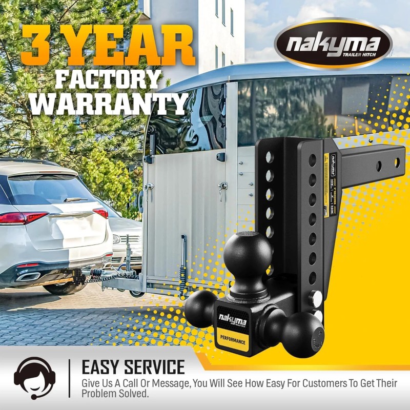 Nakyma Adjustable Trailer Hitch Drop Hitch, Tow Hitches with 8-Inch Drop/Rise for Truck