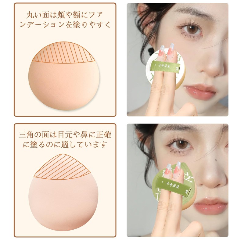 • Makeup Puff - The unique puff design combines triangles and circles to fit the contours of your face. The round side makes it easy to apply foundation on your cheeks and forehead, and the triangular side is suitable for precise eye and nose. It has a fluffy feel like marshmallow, and it is easy to stretch and has a natural finish