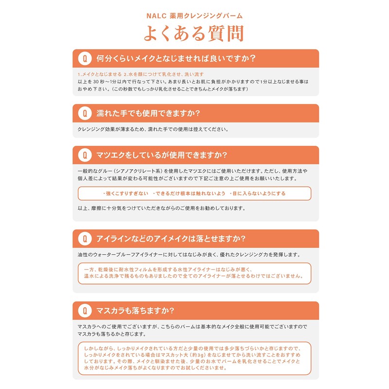 • ■【メイク・皮脂汚れをするんっとオフ※2】体温でとろけるようなバームにすることで、摩擦レスでお肌に負担をかけることなく汚れを包み込み、メイクや皮脂汚れを落とします。■【透明感とハリのある肌へ】チンピエキス配合でくすみのない透明感とハリのある肌へ導きます。■【マツエク対応!】NALCのクレンジングバームはマツエクOK!使用時は目に入らないように注意した上でご使用ください。