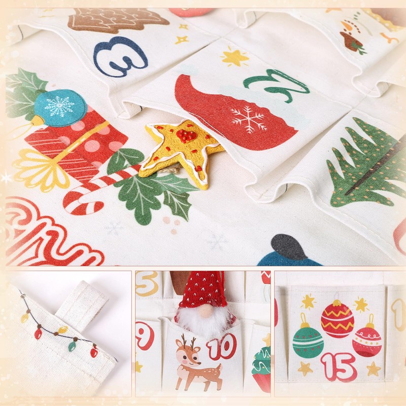 Naler 24 Advent Calendar for Filling with 24 Pockets, Advent Calendar Self-Filling for Hanging Self-Filling Decorative Christmas Calendar