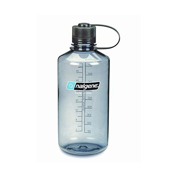 Nalgene Tritan Botella de agua de boca estrecha sin BPA, de 32 onzas, color gris/negro