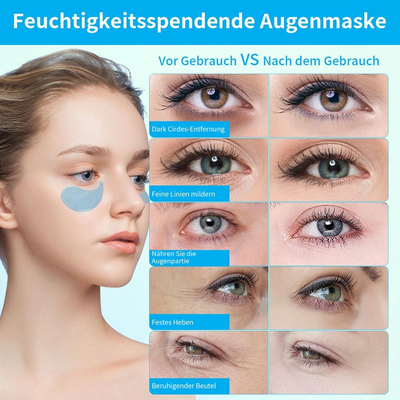 - Collagen boost: Packed with high-quality collagen, these eye pads help strengthen the skin around the eyes and improve elasticity and firmness. This helps to reduce the visibility of eye bags, wrinkles and eye circles and ensures a youthful glow.