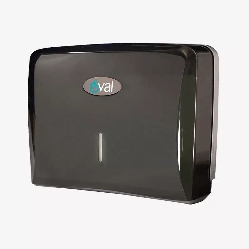 Es un dosificador de toallas interdobladas en Z. Tiene capacidad para almacenar hasta 250 toallas; su diseño corto y delgado es muy conveniente ya que ahorra espacio y las toallas salen más suavemente por no estar tan presionadas, por lo que se dosifica de una en una. Este despachador dosifica cualquier marca de toallas interdobladas en Z, ya sean de hoja doble o sencilla. Este equipo cuenta con una ventana al frente para que se pueda ver a la distancia, cuántas toallas quedan al interior. Este despachador viene con una llave. En resumen: es un artículo sumamente resistente por su gran flexibilidad, con muy bonito diseño y muy económico.